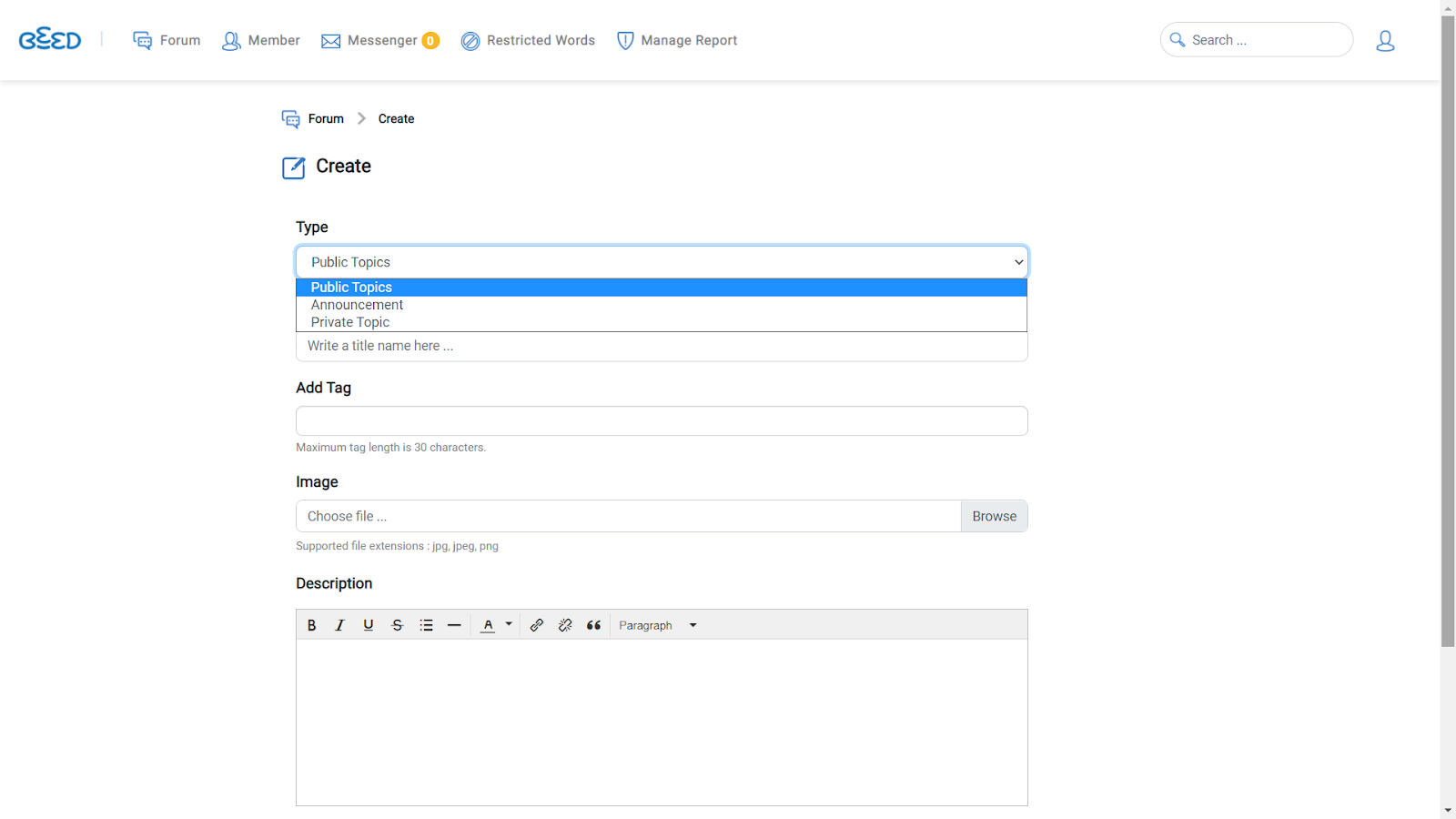 3. Saat membuat Topik Forum Anda dapat: