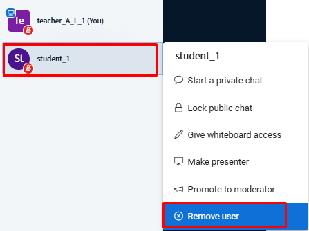 If necessary, click a participant’s name and select Remove User to remove them from the session.