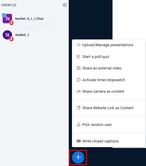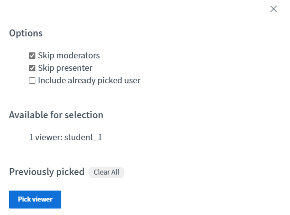 Pick Random User – Randomly selects a participant from the room, useful for Q&A, activities, or engagement exercises.
