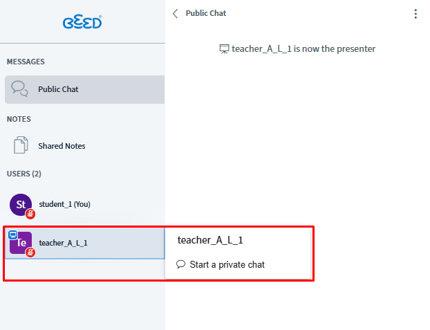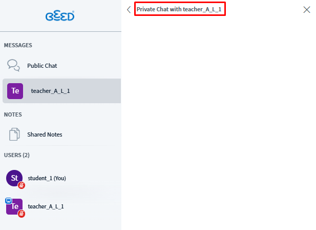 Start a Private Chat (This feature can be done by the Educator or Participant)