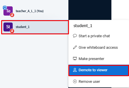 To revert their role, click their name again and select Demote to Viewer.