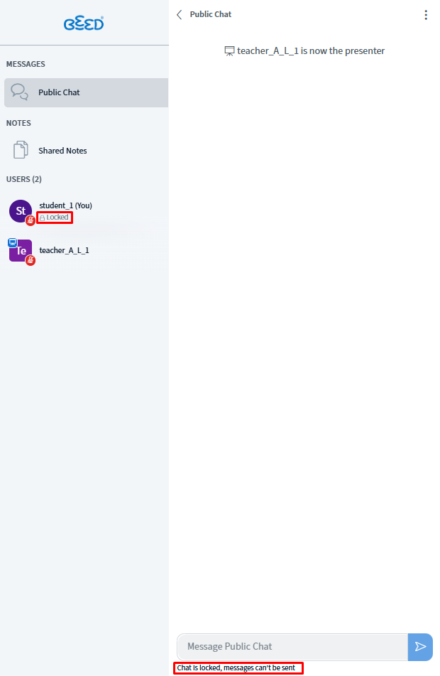 Lock Public Chat (This feature can be done by the Educator/Moderator only)