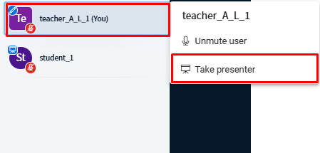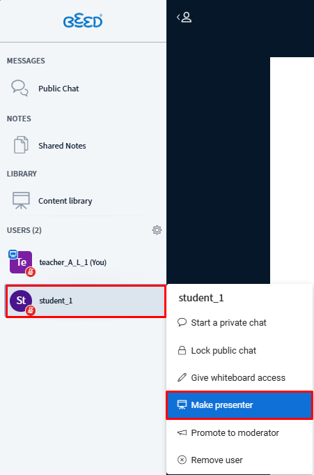 Make Presenter (This feature can be done by the Educator/Moderator only)