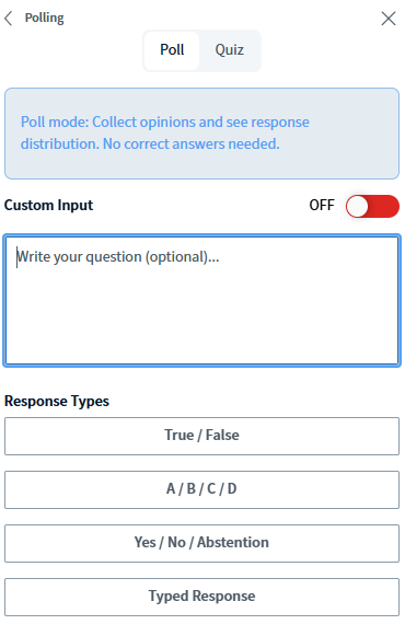 Start a Poll/Quiz – Lets you create quick polls or quizzes to gather feedback or check understanding from participants.