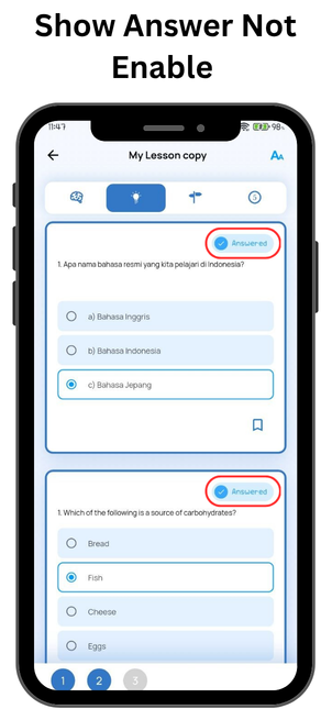 Indicator for Correct or Incorrect When Answering Question