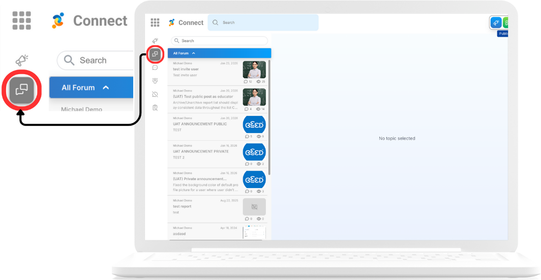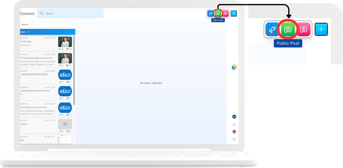 Topik Publik adalah thread diskusi terbuka yang dibuat oleh Pendidik di BeED Connect. Fitur ini dirancang untuk mendorong kolaborasi, berbagi ide, dan percakapan yang bermakna di seluruh jaringan institusi.