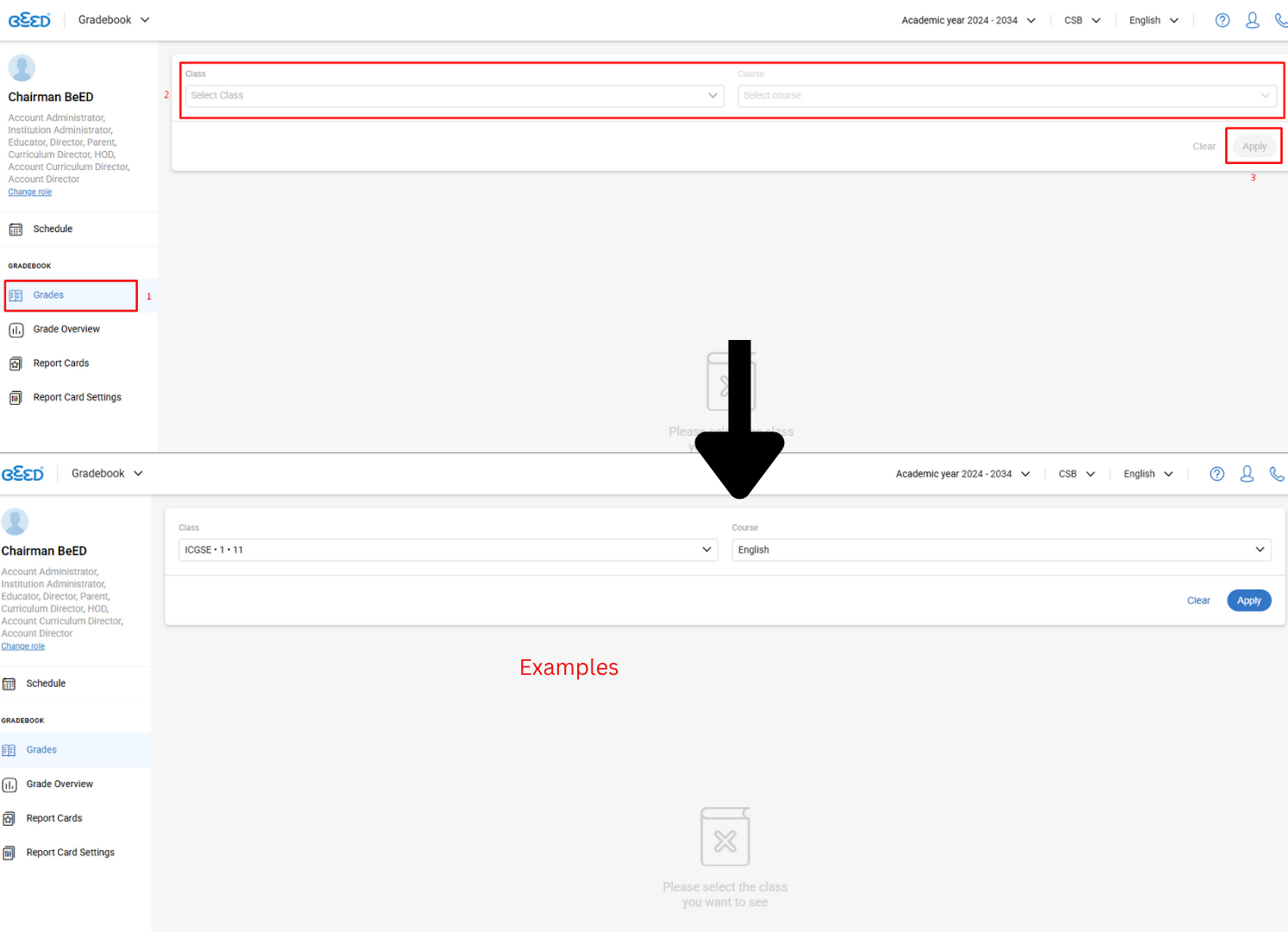 - Choose the correct Segment, Level, Class, and Course from the drop-down menus,