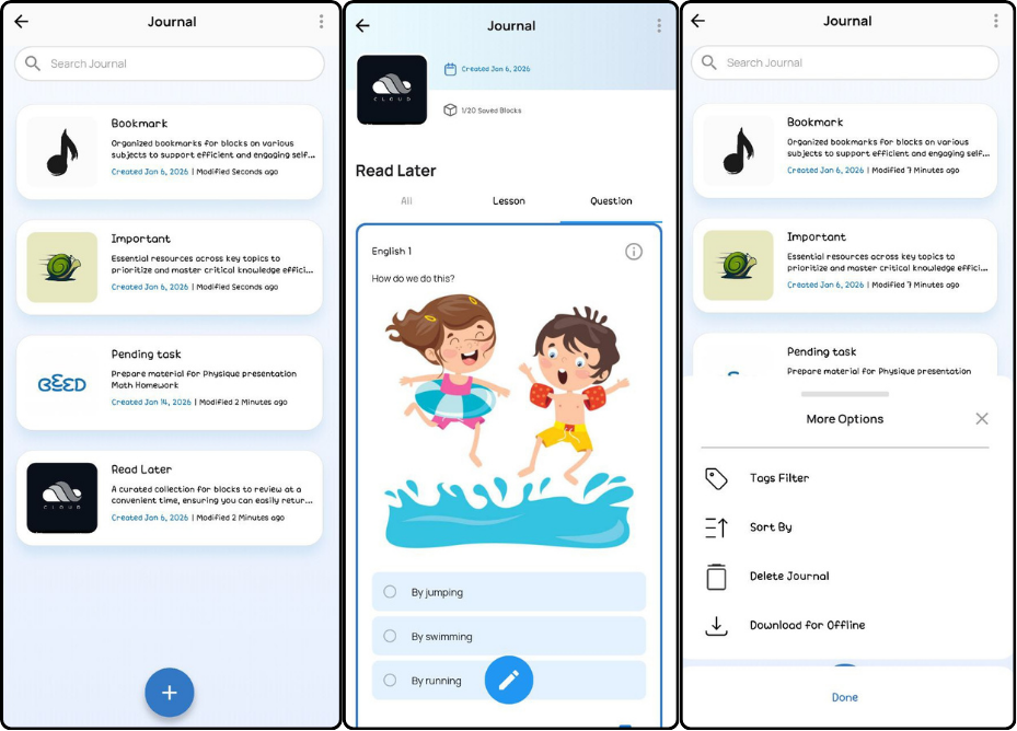 These features make it easier to manage your Journal, revisit important learning moments, and keep your reflections neatly organized in one place.