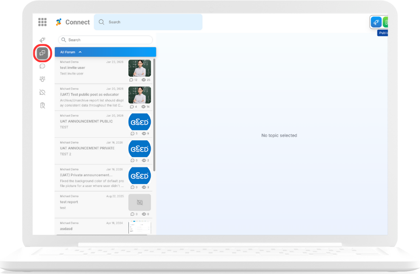 Educator: Membuat topik, moderasi diskusi, mengelola laporan