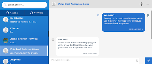 Messenger allows you to send private messages and create group chats with other users in the same institution network.